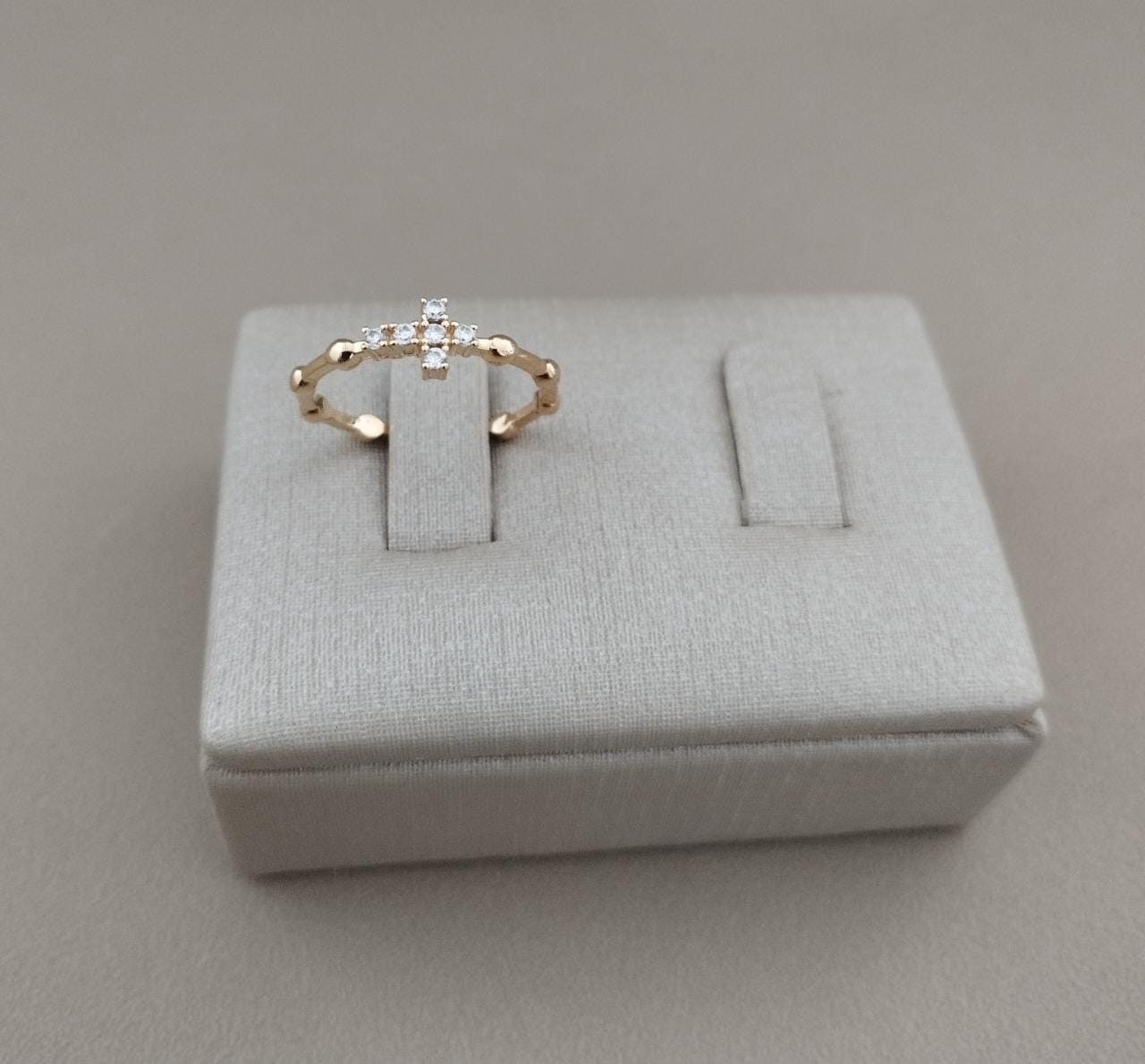 ANEL CRUCIFIXO CRAV. C/ SEIS ZIRC BANHO DOURADO