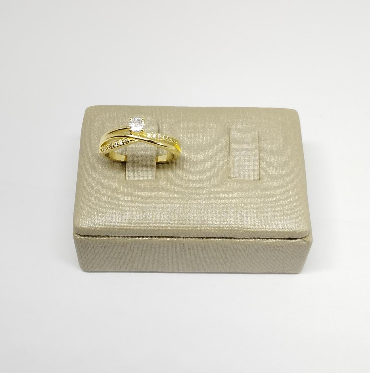 ANEL INFINITO LISO VAZ. C/ ZIRC NOS LADOS BANHO DOURADO