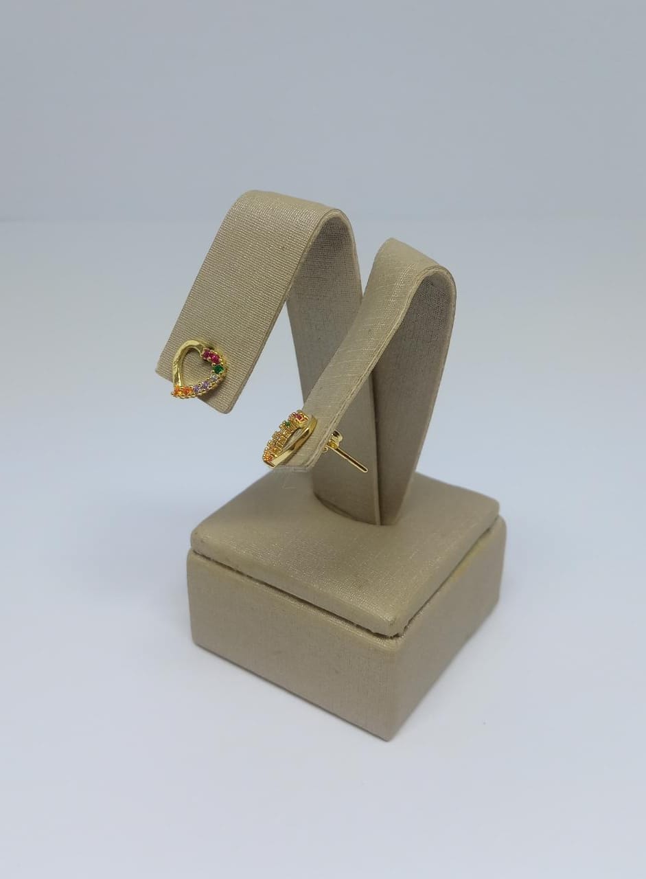 BRINCO CORACAO ZIRC. LATERIAS COLO. BANHO DOURADO