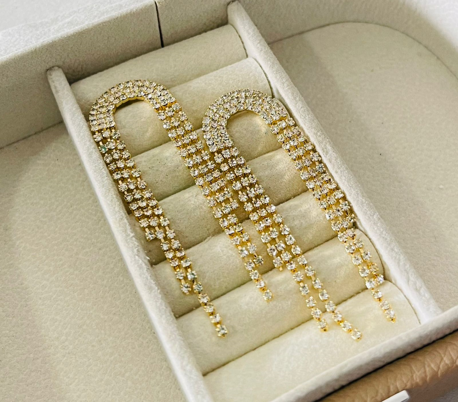 BRINCO DE FRANJA PEDRAS BANHO DOURADO R$13,75
