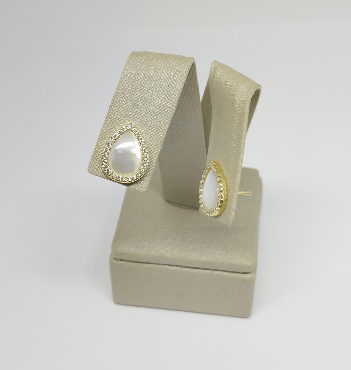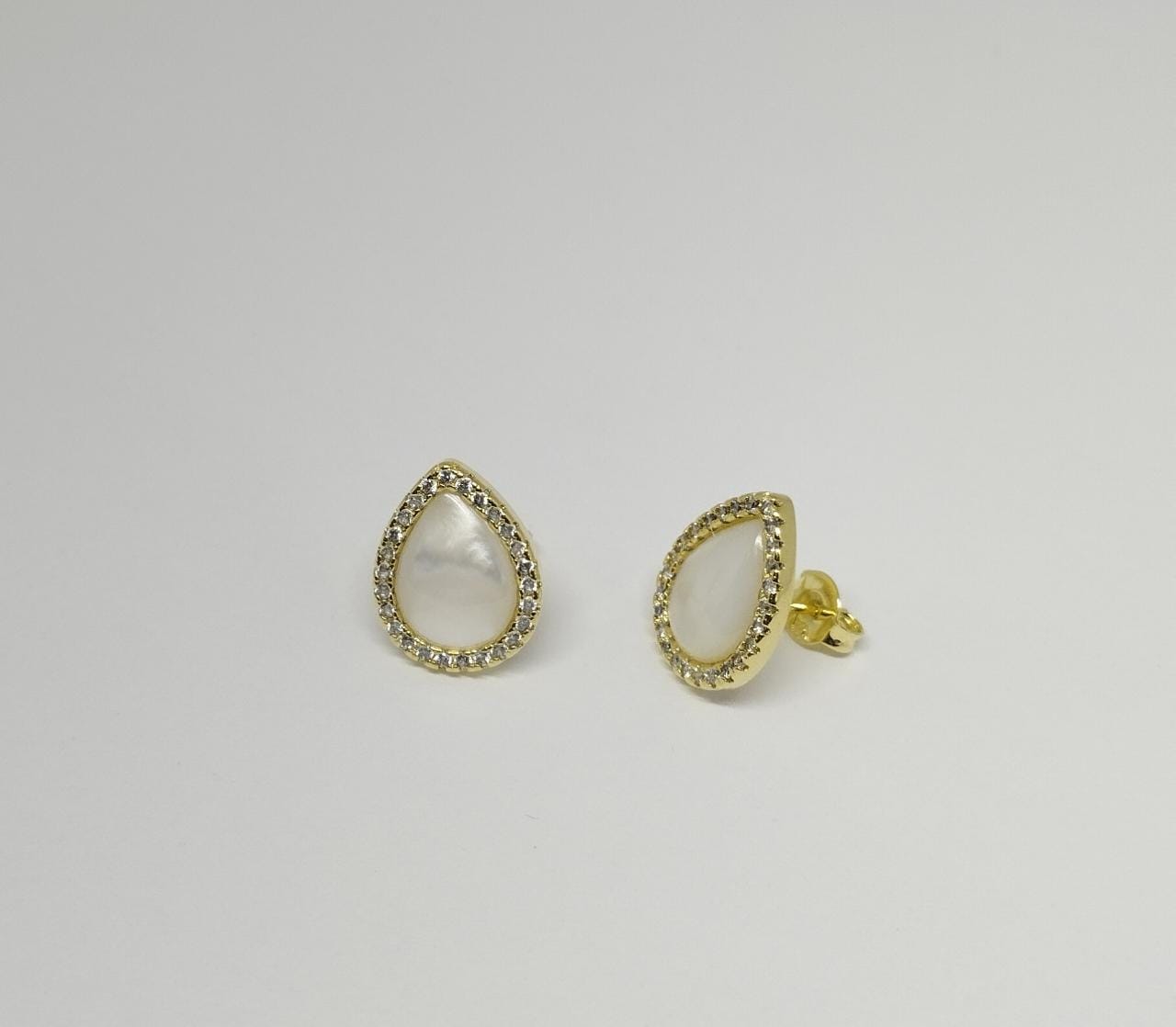BRINCO GOTA PEROLA CRAVEJADO BANHO DOURADO