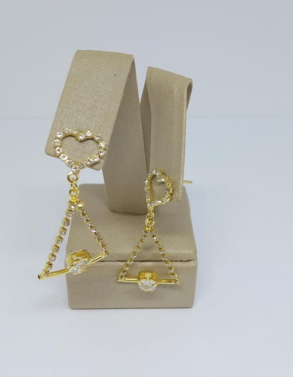 BRINCO TODO DE PEDRAS ZIRC CORACAO 6MM BANHO DOURADO
