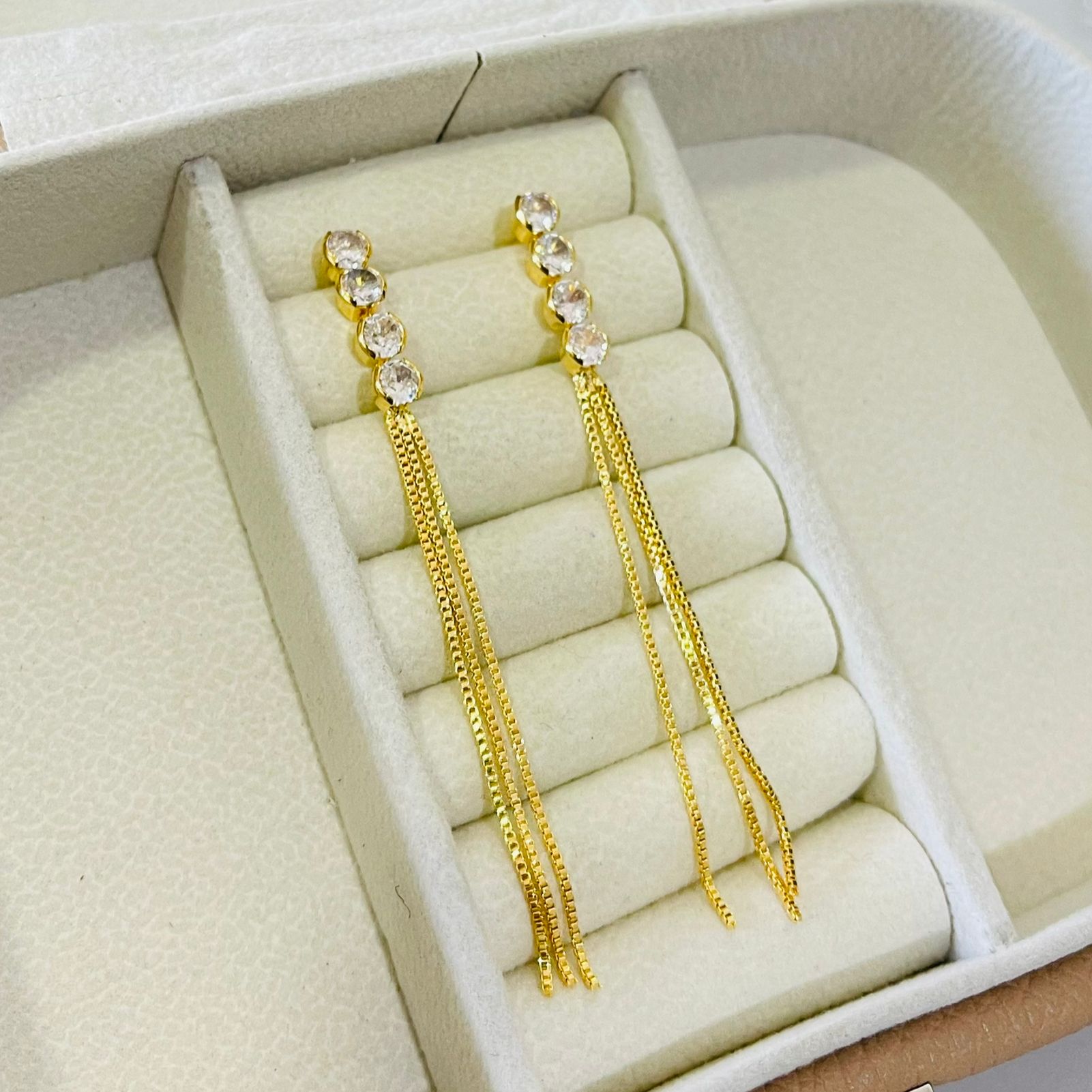 BRINCO ZIRC. C/ FRANJA SM BANHO DOURADO