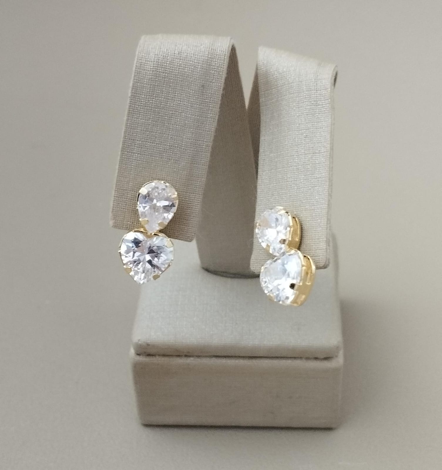 BRINCO ZIRC GOTA 6X8 E CORACAO 8X8 BANHO DOURADO