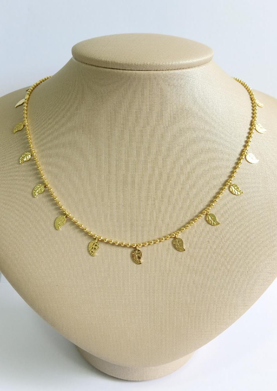 CHOKER PENDUREZAS FOLHAS BANHO DOURADO