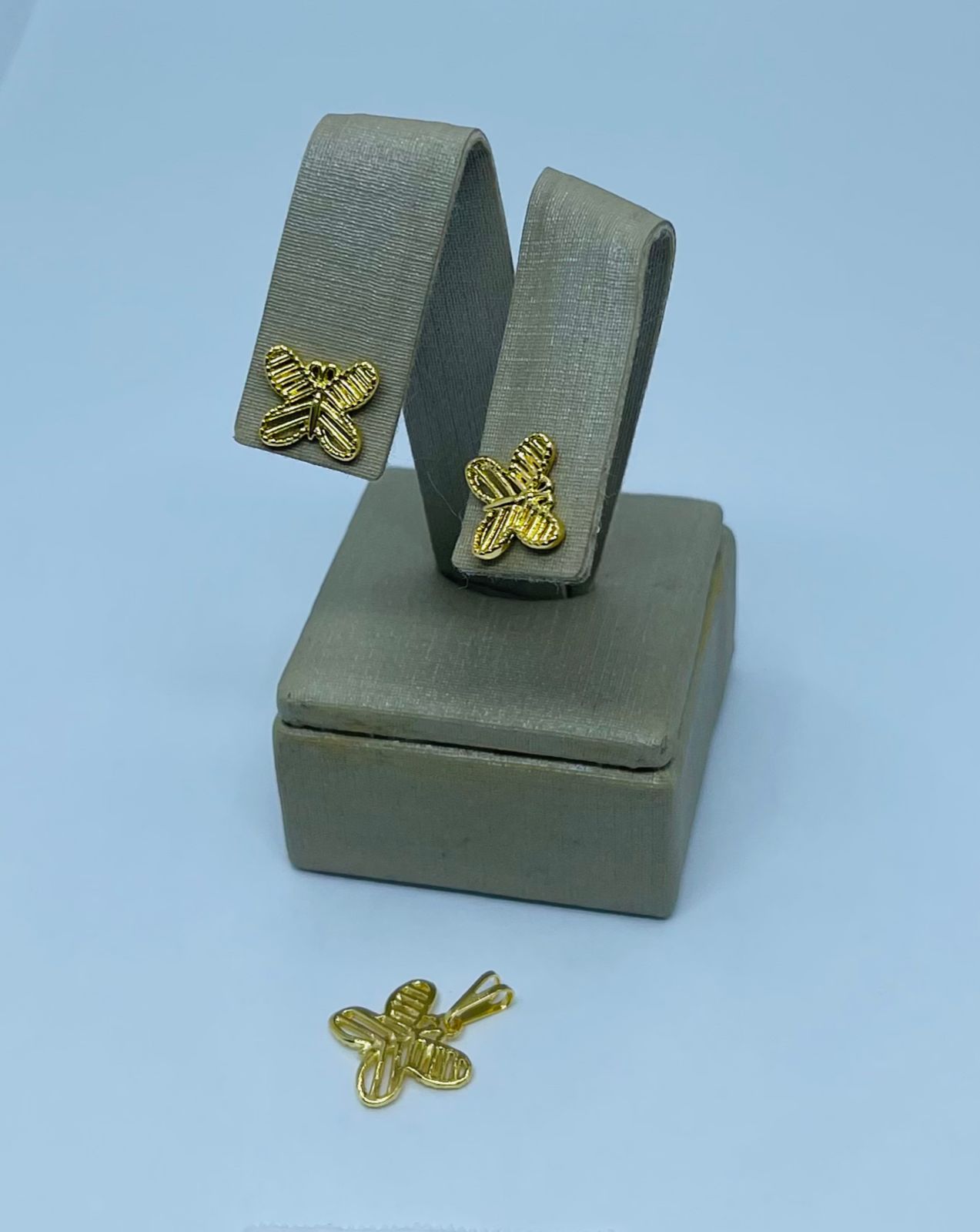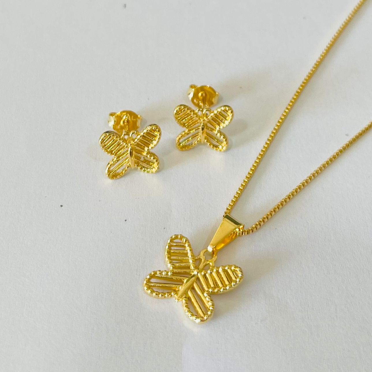 CONJUNTO BORBOLETA VAZ COM LISTRAS BANHO DOURADO