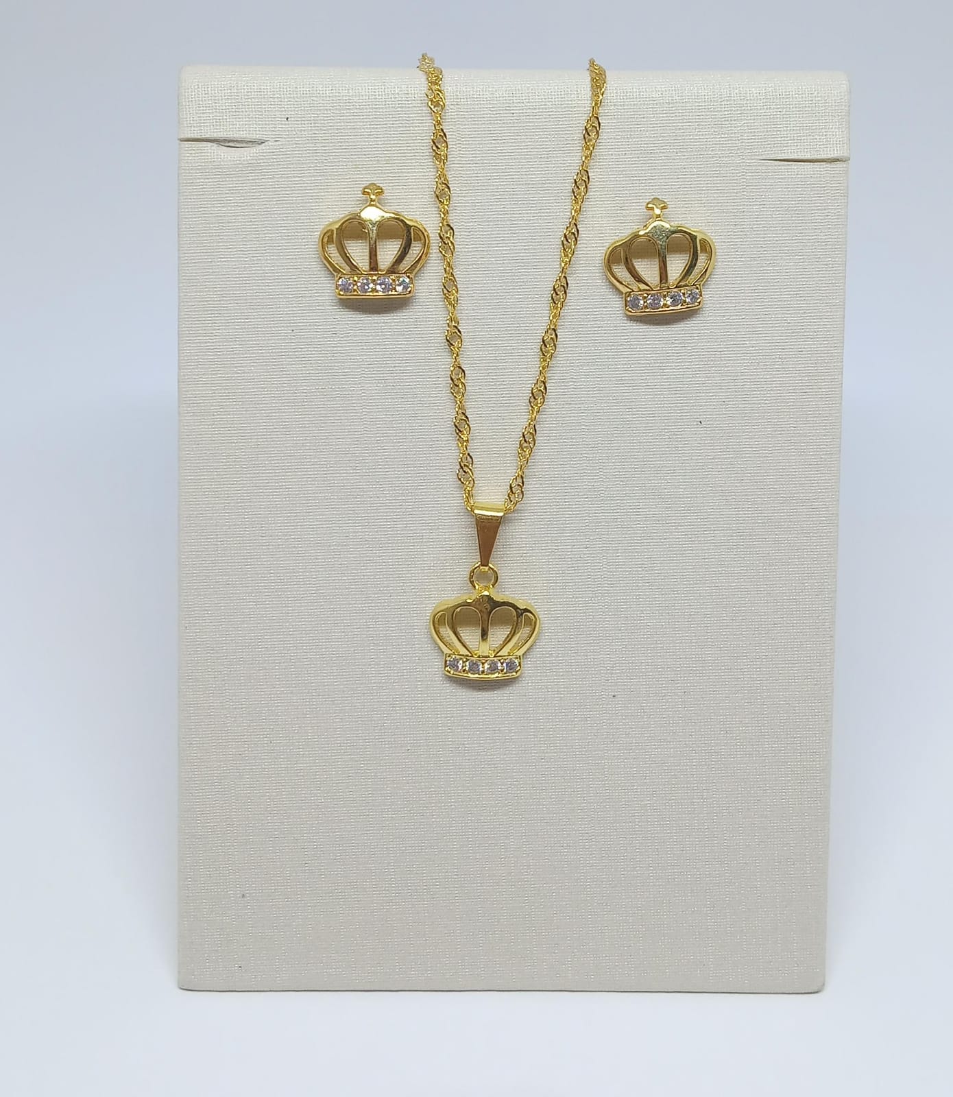 fora de linhaCONJUNTO COROA VAZ C/ PEDRAS BANHO DOURADO