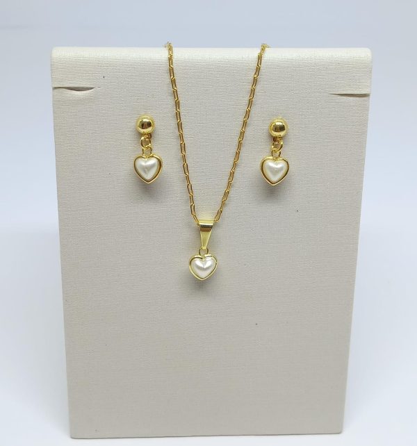 CONJUNTO INF CORACAO DE PEROLA BANHO DOURADO