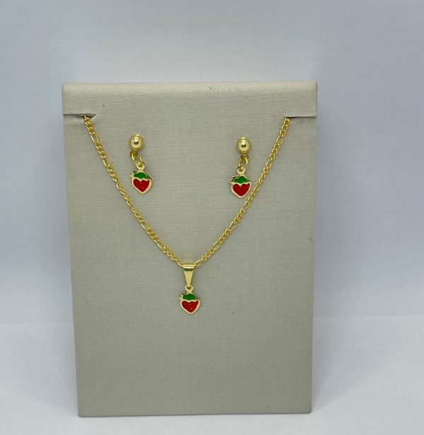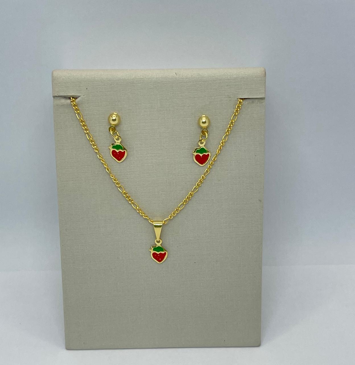 CONJUNTO INF. MORANGO BANHO DOURADO R$14,80