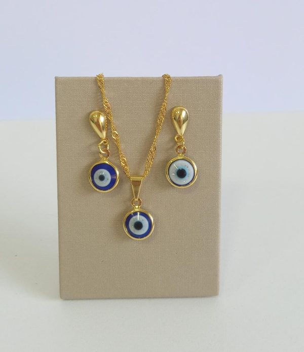 fora de linha CONJUNTO OLHO GREGO BANHO DOURADO