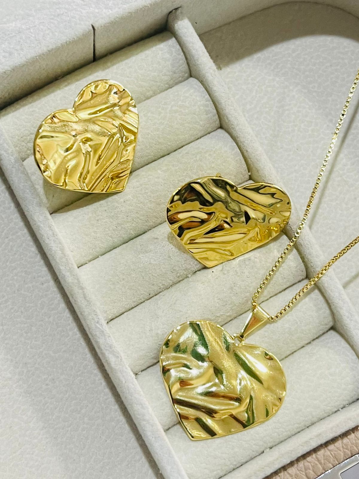 CONJUNTO ORGANICO CORACAO 25MM BANHO DOURADO