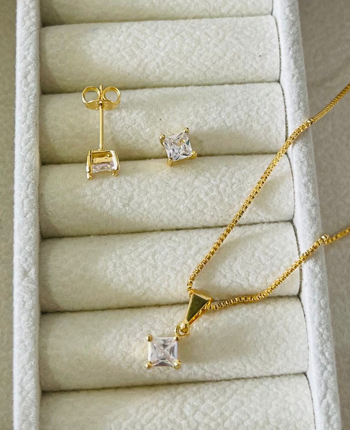 CONJUNTO ZIRC QUADR. 527 SM BANHO DOURADO