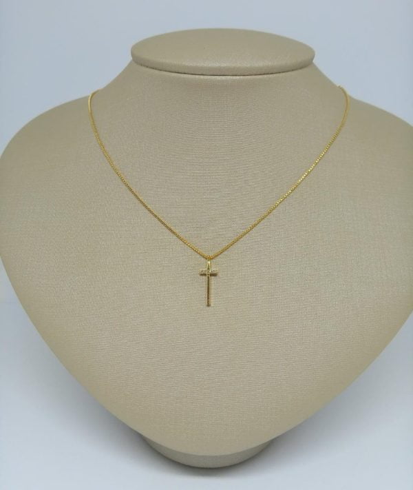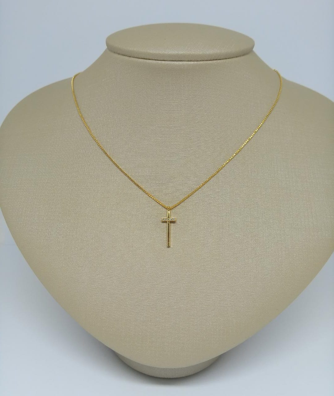 GARGANTILHA CRUCIFIXO CRAVEJADO BANHO DOURADO
