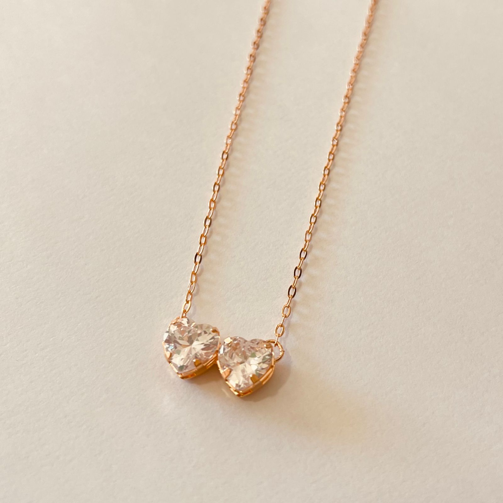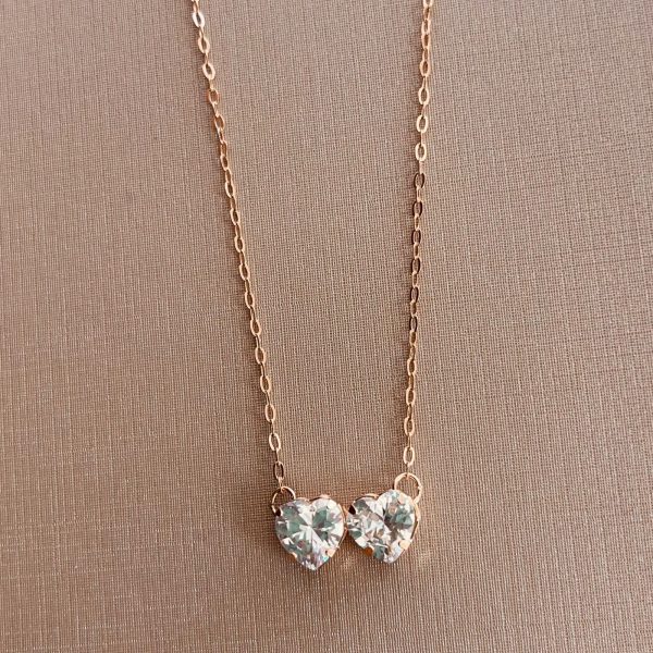 GARGANTILHA DUAS ZIRC CORACAO 8MM BANHO ROSE