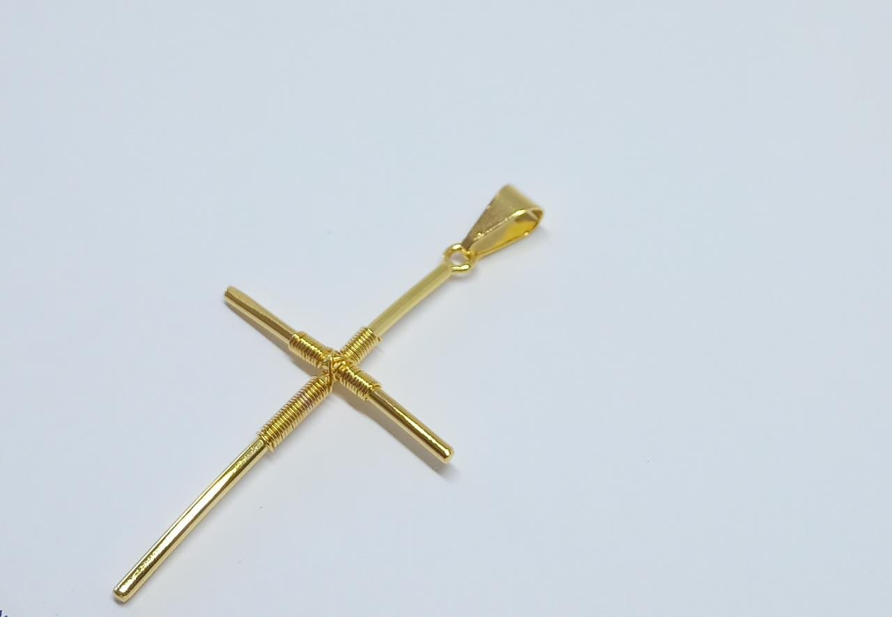 PINGENTE CRUC. TRANCADO C/ FIO BANHO DOURADO R$8,40