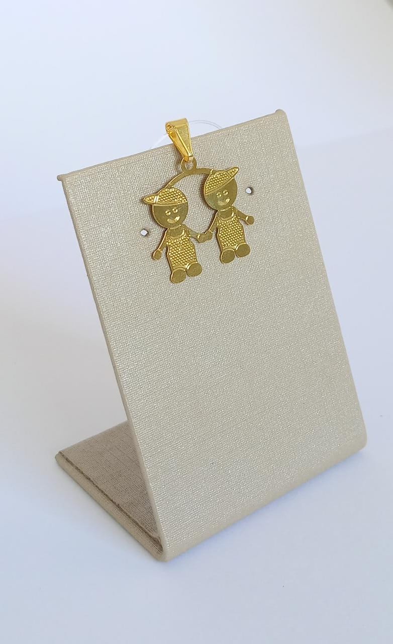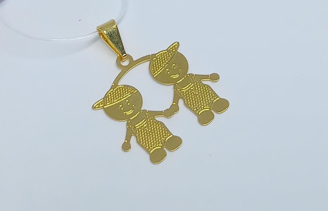 fora de linha PINGENTE DOIS MENINOS CM DETALHES BANHO DOURADO