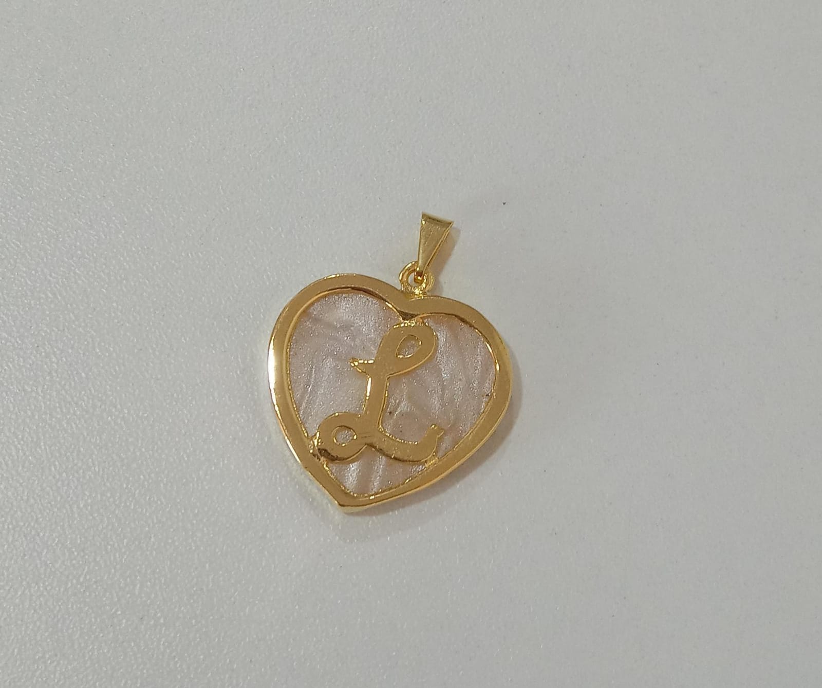 PINGENTE MADREPEROLA LETRA CURSIVA BANHO DOURADO