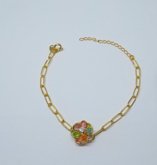 PULSEIRA FLOR PEROLA BANHO DOURADO