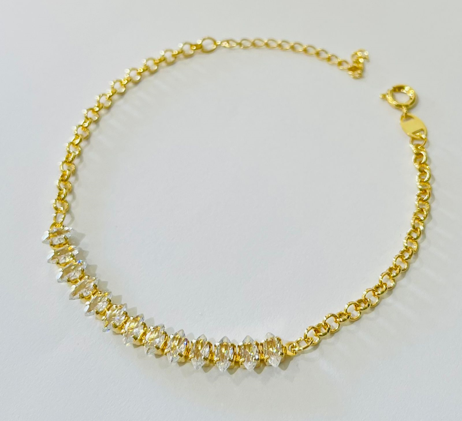 PULSEIRA ZIRC .NAVETE COM ELO PORT. BANHO DOURADO R$26,70