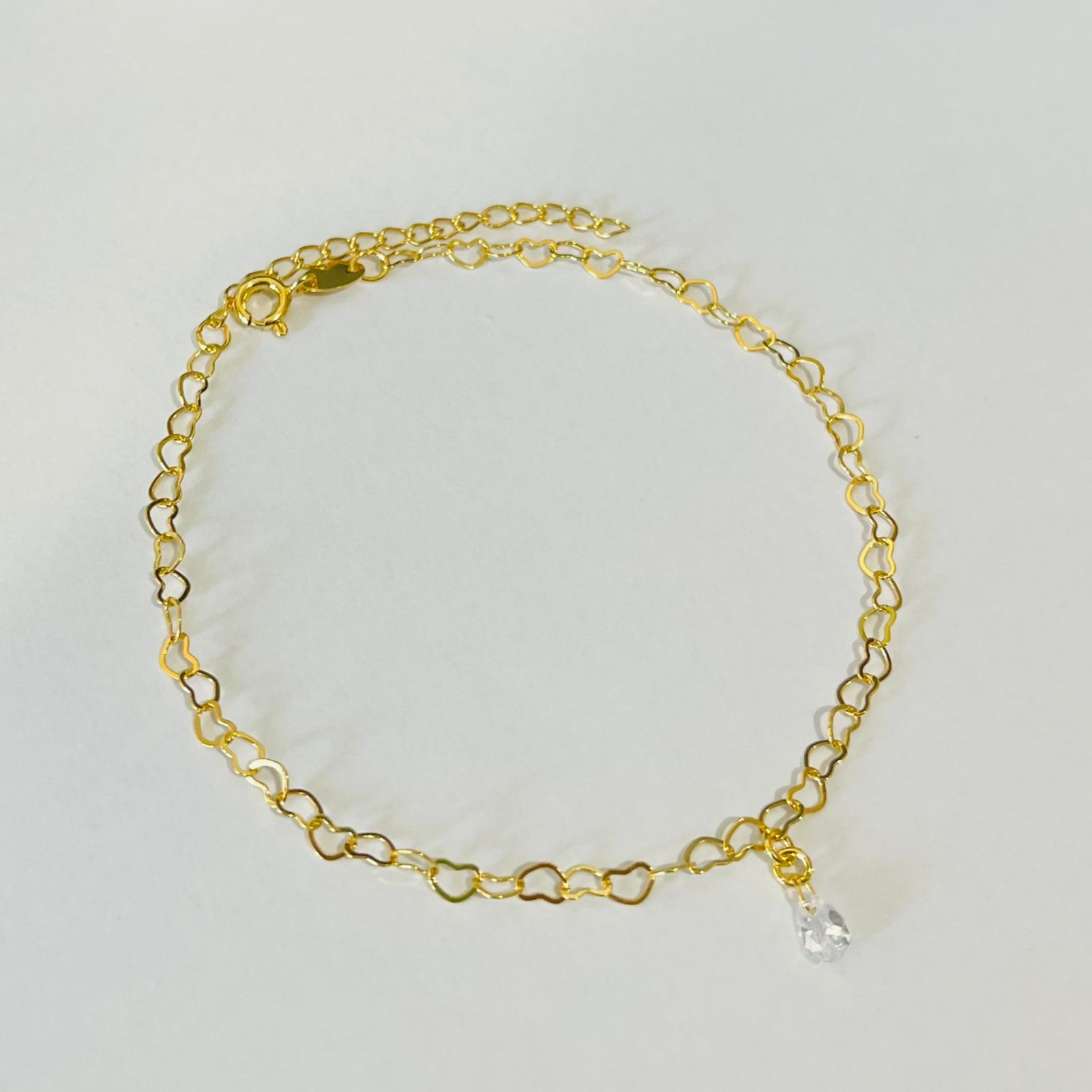 TORNOZELEIRA COR. CORACAO0.4 PEND. GOTA SM BANHO DOURADO