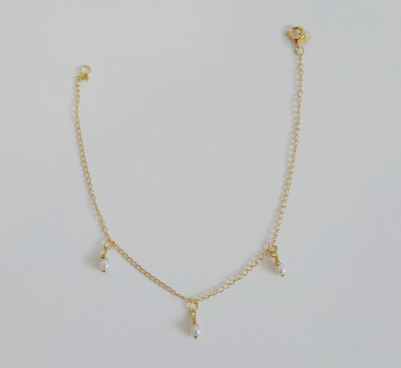 TORNOZELEIRA PEND. PEROLAS BANHO DOURADO